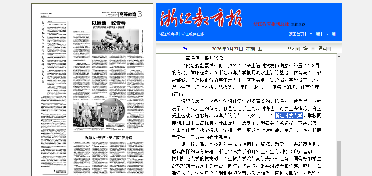 今年2月,教育部将“健康第一”作为新春第一会的主题,并印发《关于全面推进健康学校建设的指导意见》。浙江省教育厅也于近日启动“活力校园 浙青健行”大学生体质提升专项行动。...