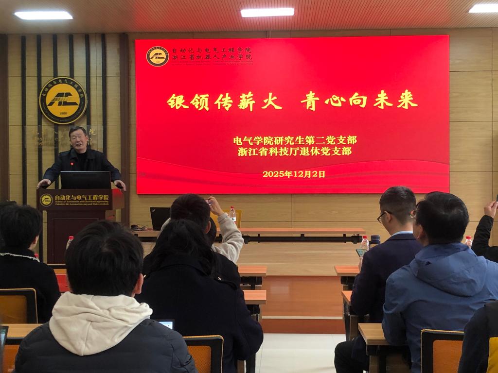 12月2日,浙江省科技厅退休党支部书记、科技厅原副厅长王宏理一行来校,与电气学院研究生第二党支部开展党建联建活动。副校长侯北平出席相关活动。学校科技处、电气学院相关负责人共同参加活动。由省委老干部局、省委教育工委、省关工委共同发起的银领传薪火 青心向未来”——省直单位离退休干部党支部与高校学生党支部结对共建活动中,我校电气学院研究生第二党支部与省科技厅退休党支部结对共建。此次来校开展活动,王宏理表...