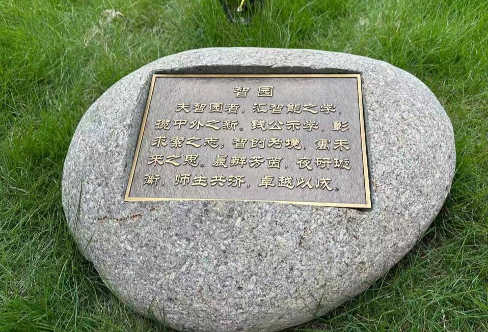 “智园”坐落于习得园C1电气学院入口,该项目为校园文化一院一景项目,列入本年度服务师生办实事项目。“夫智园者,汇智能之学,揽中外之新”,该项目面积约700平方米 ,经改造原闲置绿化完成,结合临近电气学院、计算机学院的智能科学与技术学科群学科特色,并摆放文化小品“智创未来”。智园入口设置钱学森雕像,正坐在椅子上思考的大师,也默默注视着来往师生,激励他们追求真理、严谨治学,在各自的专业领域内追求卓越。智园中心铺设草皮,依周边建筑设置若干石质长椅,为师生提供休憩、交流的户外空间,园区内部照明通过入口处分布太阳能光板实现,并根据自然光变化动态开关,践行绿色低碳理念。该项目由宣传部统筹,电气学院立项,校建处组织设计施工,从项目立项、论证、施工分两期完成,将成为师生超越传统教室边界的学习交流空间。