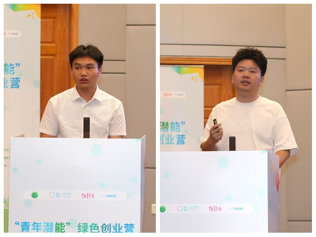 在青年潜能”绿色创业营青春小店故事会上,来自浙江科技大学的00后校友张毅文分享了创业经历。他在大学在校期间自主创业,成立创式云科技,创式云科技作为一家技术研发型的国家高新技术企业;全国低碳科技创新大赛一等奖获奖者、浙江科技大学环资学院谭江涛同学分享了他所在的氢驰团队的一系列研发成果。