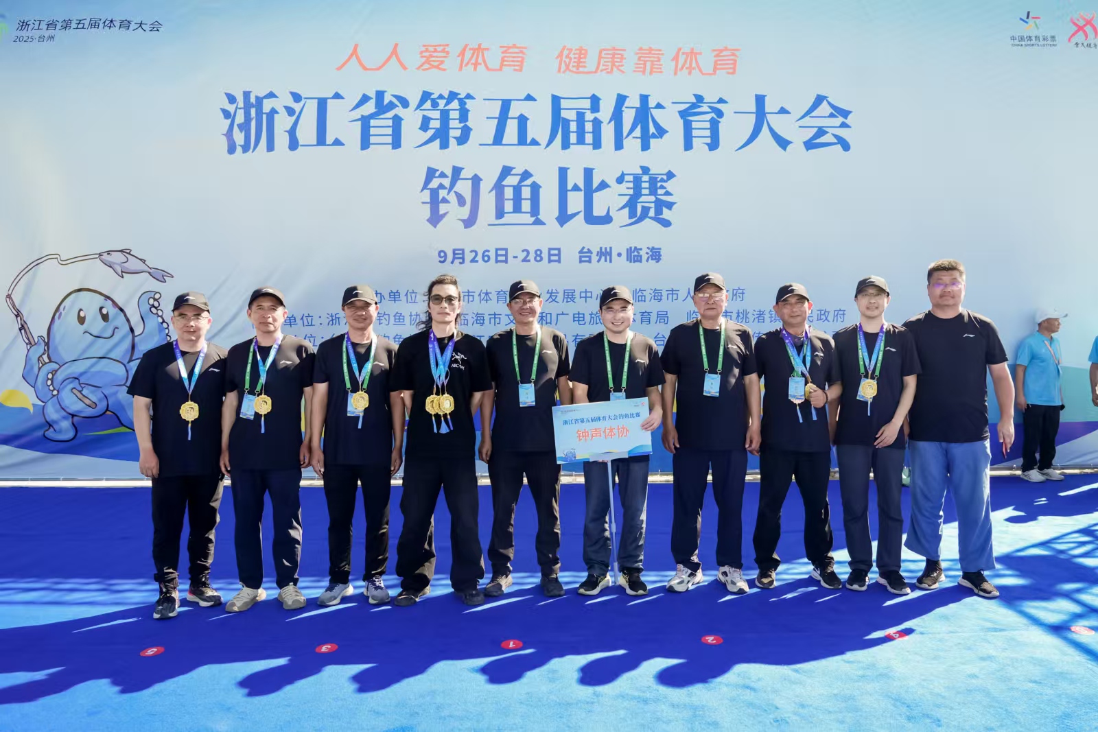 9月26-28日,浙江省第五届体育大会钓鱼比赛在临海市举行,由我校工会和浙江师范大学工会联合筹备组建的浙江省钟声体协代表队获得行业组团体冠军。