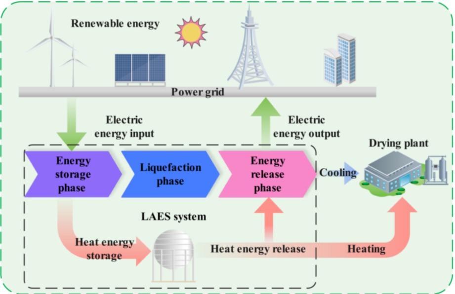 在Applied Thermal Engineering上发表的“A multi-energy polygeneration liquid air energy storage system integrated with drying functions”,硕士研究生杜帅为第一作者,董聪副教授为通讯作者,浙江科技大学为第一单位。该论文提出了一种集成粮食干燥功能的冷热电联供的多联产液态空气储能系统(LAES-CCHP),评估了系统输出特性以确定最优运行参数,继而通过热风干燥与冷凝强化干燥实现负荷匹配,并完成详细的经济性分析。
