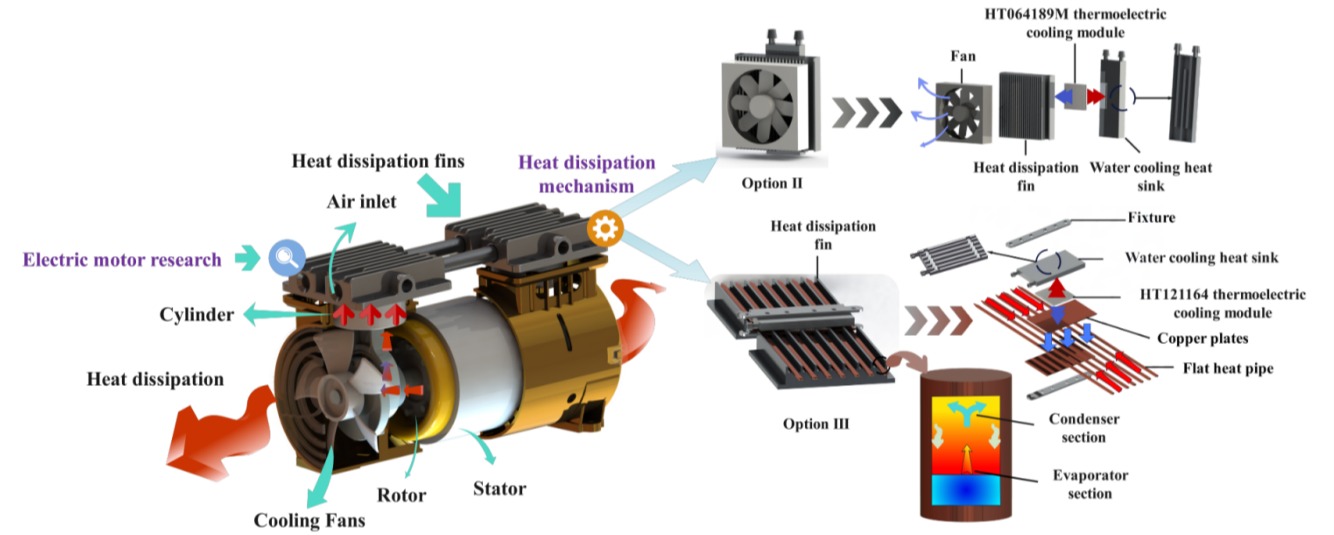 在Case Studies in Thermal Engineering上发表的“Thermal management of electric motors using integrated thermoelectric cooling and flat heat pipes”,硕士研究生吕星为第一作者,董聪副教授为通讯作者,浙江科技大学为第一单位。该论文开发了一种将热电制冷技术与扁平热管相融合的混合热管理系统,通过不同的热管理指标系统评估了热电制冷片不同输入电压与电机功耗下的系统表现。该系统为高功率密度电机的热管理优化提供了理论依据与实践指导。
