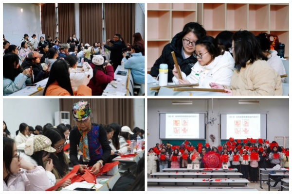 一把竹笛,七十余道工序,藏着千年乐音的秘密;一方红纸,万千锦绣纹样,剪出中华文化的温度。近日,后勤服务中心联合人文与外国语学院,面向学院107名大学生,推出“非遗+劳动”特色课程。课程特邀两位省级非遗代表性传承人——竹笛制作技艺传承人丁志刚、剪纸艺术传承人刘夏英走进课堂,以手传艺,以劳育人,在真实的劳动体验中,带领大学生触摸传统文化,体悟匠心精神。